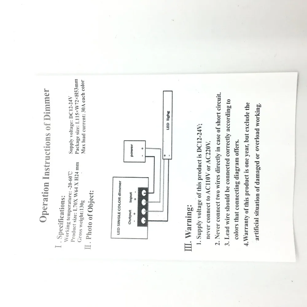 Working Voltage : DC12-24V