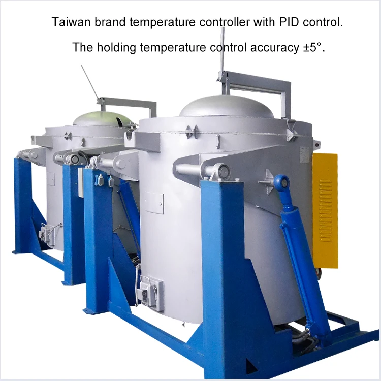 The ultralight Mullite brick and the ceramic fiber module composes the lining. High nickel alloy resistance strips or wires, large heat dissipation area, long service life. Taiwan brand temperature controller with PID control. The holding temperature control accuracy ±5℃. With silicon nitride thermocouple protection tube, directly measure aluminum liquid temperature, double temperature control. Premium brand graphite crucible. Liquid leak alarm, over-temperature alarm, ensure the safety of equipment and operation. Independent cylinder design, stable tilting, safe and reliable.