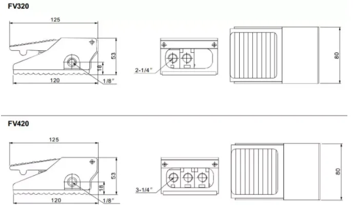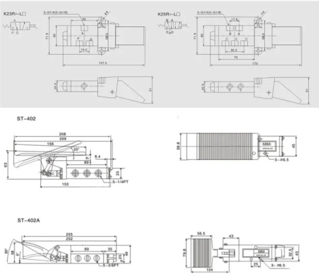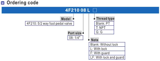 | Port Size | Inlet=Outlet=Exhaust=G 1/4" | Inlet=Outlet=G1/4" Exhaust=G1/8" | 1/4'' | 1/4 PT | 3/8 PT | ||||||