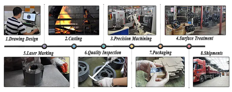 Our products are produced according to to ISO standard.European & American standards.Our output of pulleys is more than 1 million PCS per year and taper bushes around 1 million PCS per year. Also we can produce various special transmission parts according to the customers` drawings.Our products are very popular in Europe. American.Japan and other countries.The turnover oflast year is over RMB 60 millio.