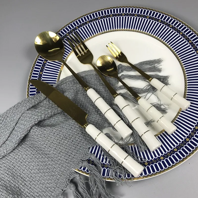 Customize Stainless Steel Flatware Cutlery Sets With Porcelain Handle