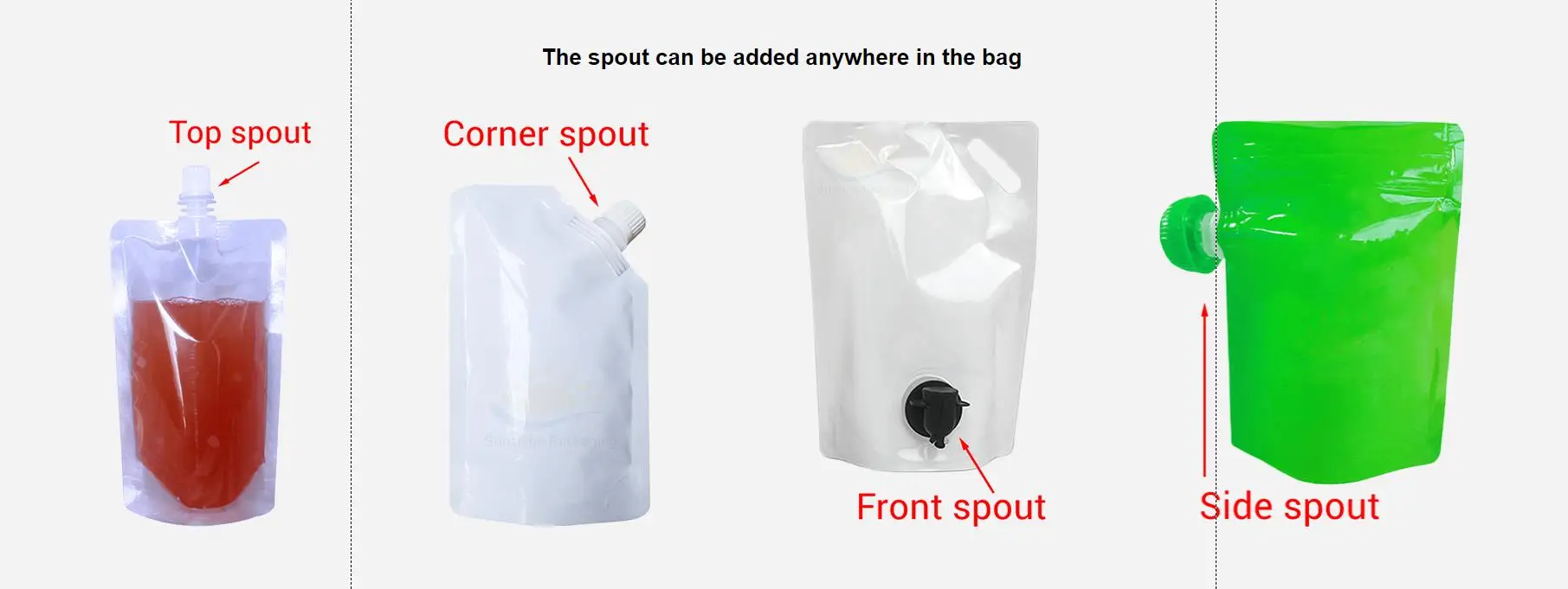Packaging Kinds | Three side seal bag, stand up bag, side gusset bag, flat bottom bag, spout bag, vacuum bag etc. | ||||||