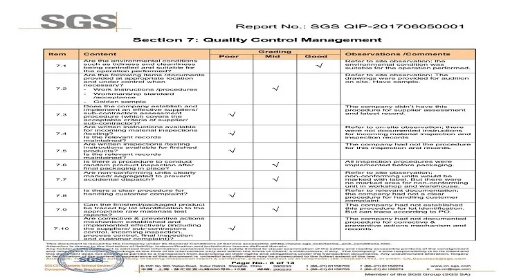 SGS Report NO.: SGS QIP.201706050001