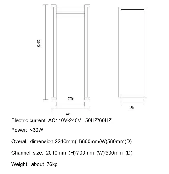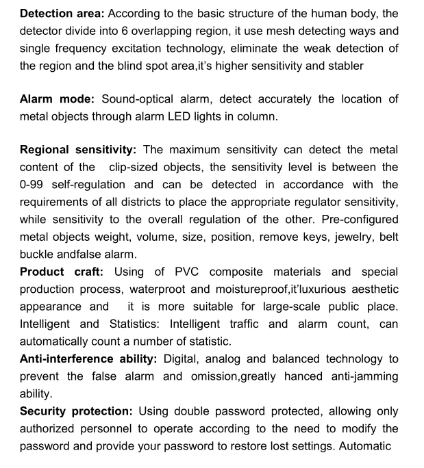 Application: Metal detector in public places like Post Office,Theatres,Hotel,Police Stations,Bank,Train station,Airport and so on.