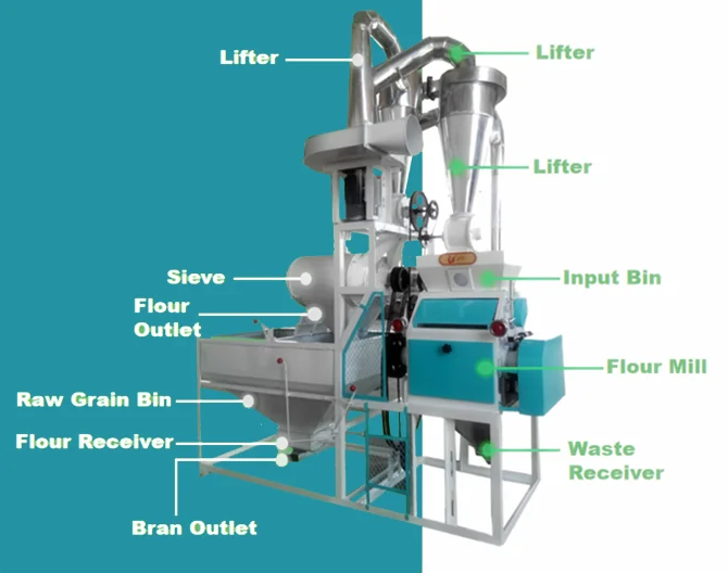 This type of flour milling machine is often used in domestic processing lines. It has the advantges of