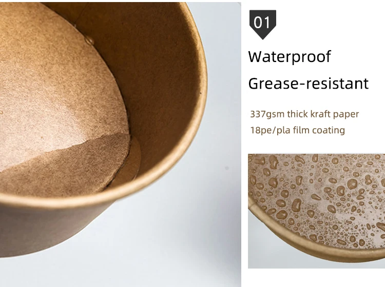 High Quality Kraft PLA Paper Salad Bowl Disposable Biodegradable with Pla Lid