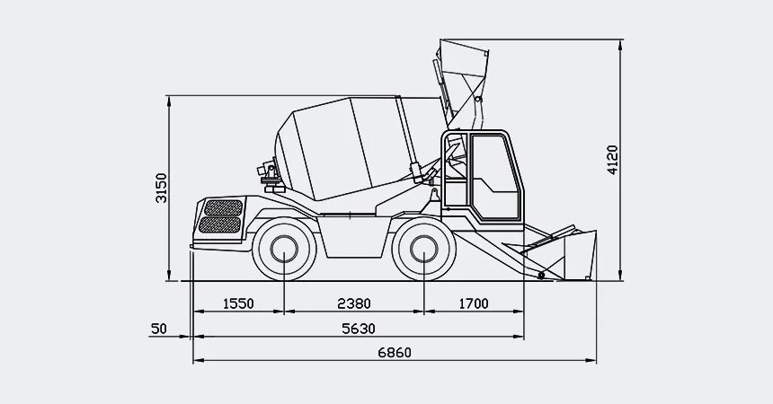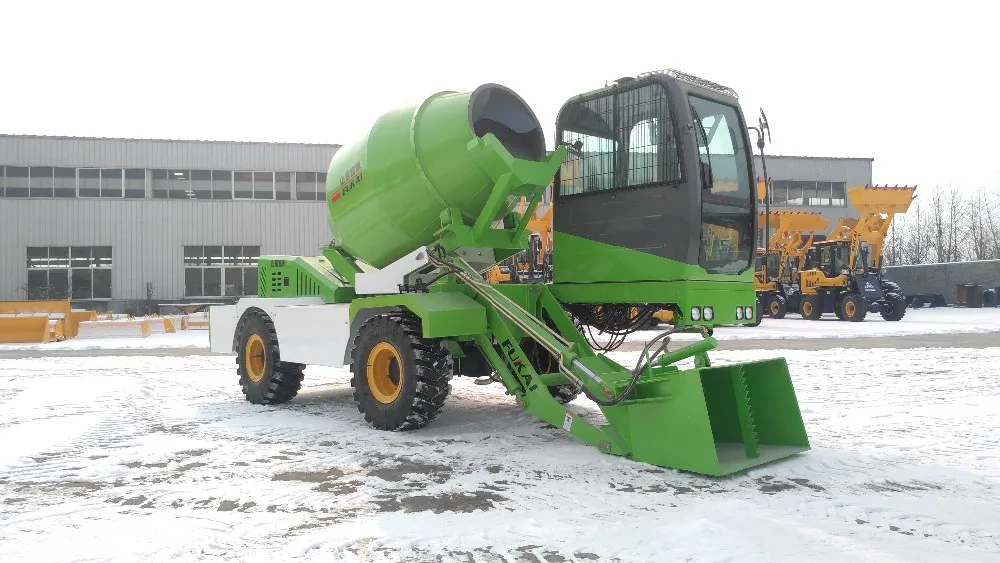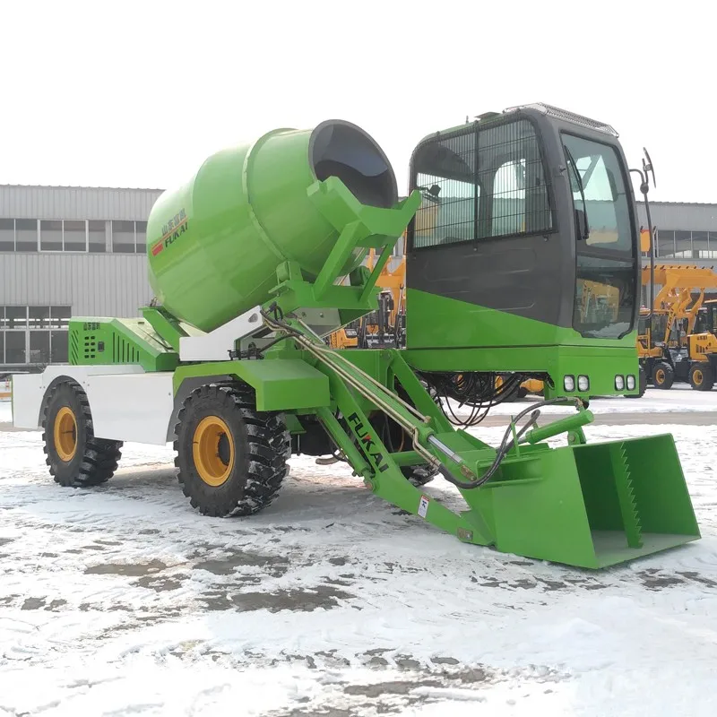FUKAI concrete mixer combines the functions of the existing concrete transporter and the mixing station, and sets the loader, mixer and transporter in one, which can automatically feed, stir and unload the material, and realize the integration of transportation and site construction work. Greatly improve the efficiency and equipment utilization rate, reduce labor costs!