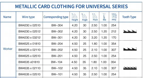 Innovation Metallic Card Clothing for Universal Series used on Worker