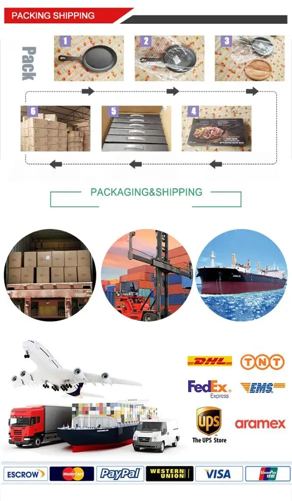 First, packed the enamel cast iron cookware into a plastic bag to avoid the dust. Then put it in a small cardboard box(brown or color). Finally put several small boxes into a big cardboard case.