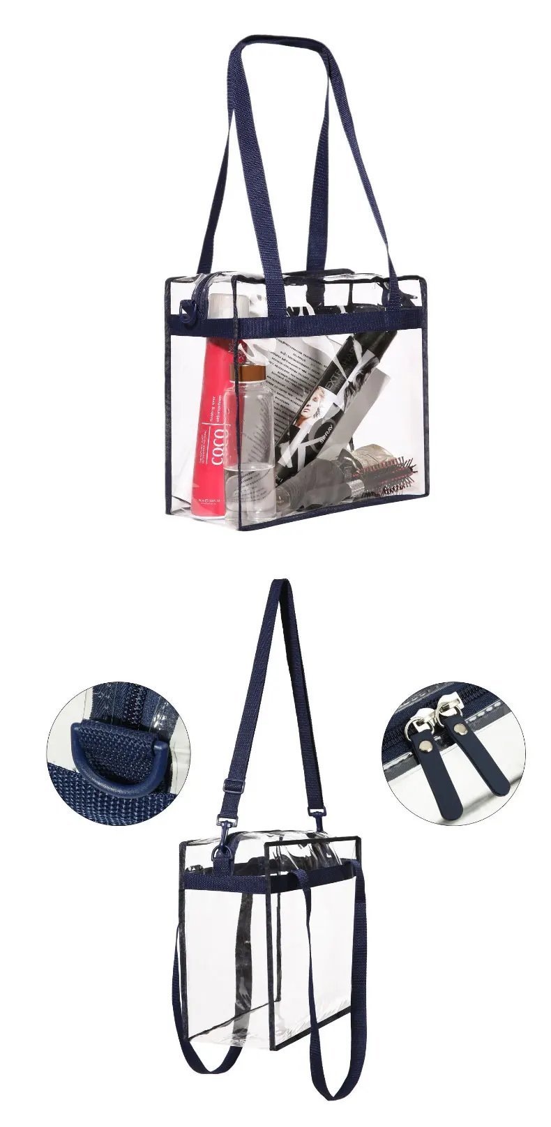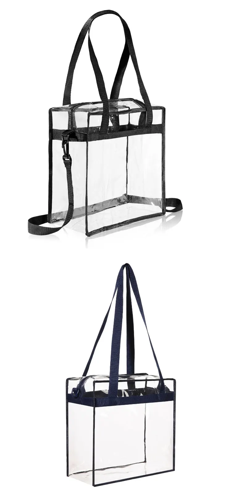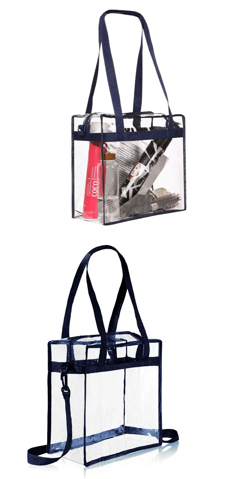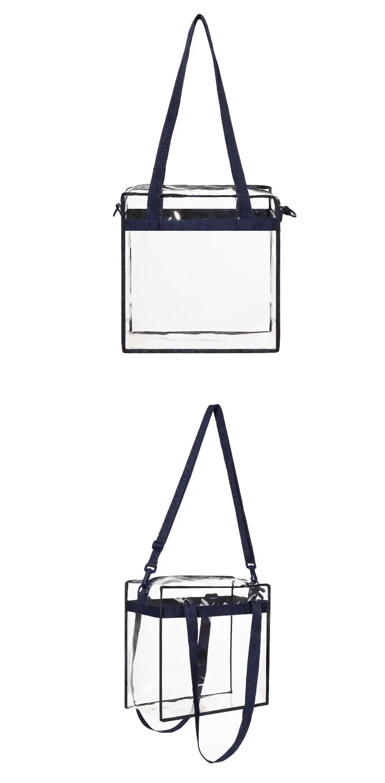 Outdoor Transparent Pvc Tote Hand Bag With Long Handle And Shoulder Strap