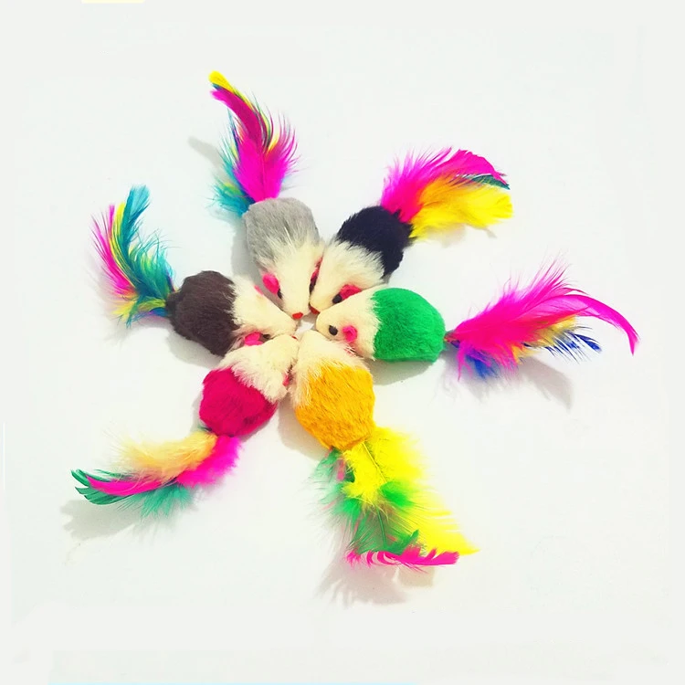 This feather mice toy cute, small, lightweight, funny.