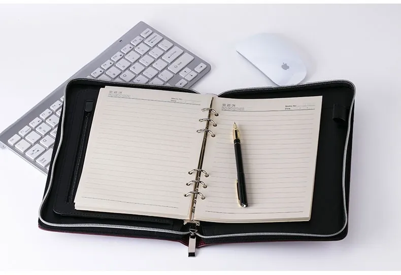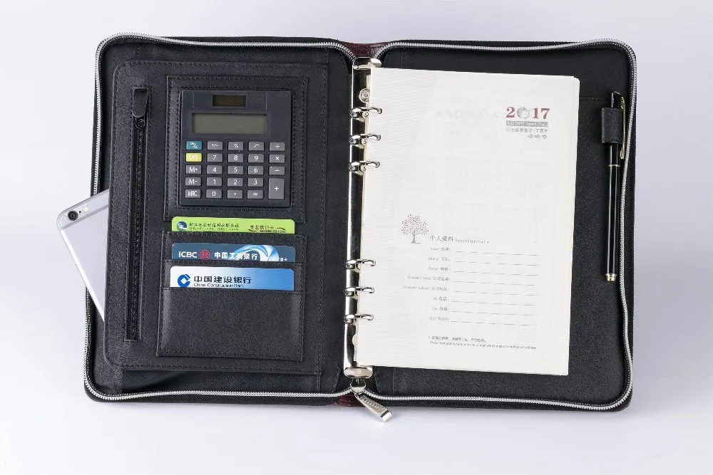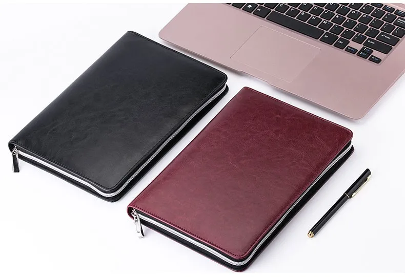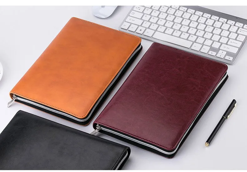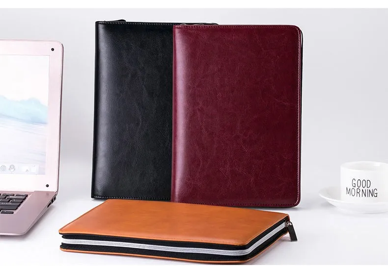 loose leaf zipper notebook pouch custom a5a6 portable notepad notes calculator faux leather linen journal diary day planner