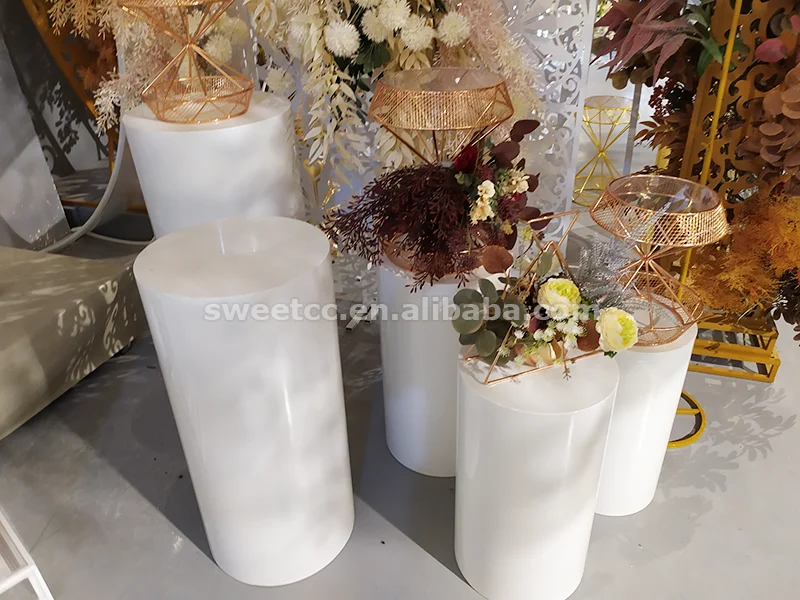 Wholesale wedding dessert table cylinder pillar plinths white modern column flower wedding table