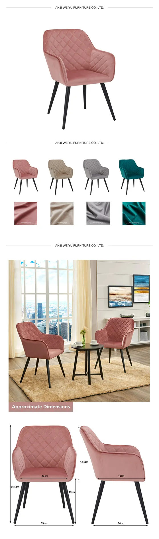 Modern design Velvet Fabric Powder Coated Legs Comfortable nordic dining chair for Dining Room