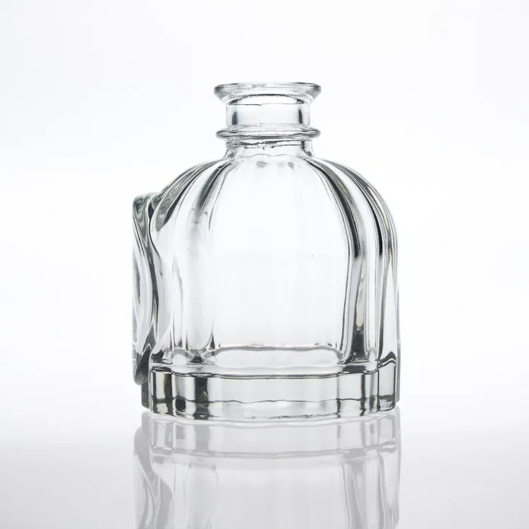 Luxury 100ml Embossed Logo Brand Clear Embossed Perfume Diffuser Glass Bottle with Reed Rattan
