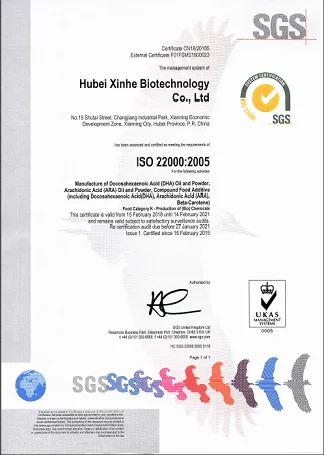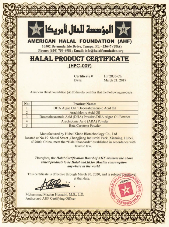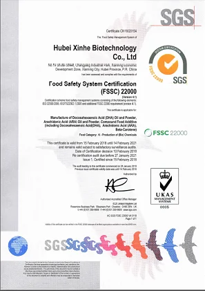 We have an excellent R&D team, there are over 50 specialists with either PhD, master, and bachelor degree. Also we make cooperation with Huazhong University of Science and Technology, Huazhong Agricultural University,Northeast Agricultural University,Northwest Agriculture and Forestry Universty and other domestic first-class Universties.Till the year of 2017,we have declared 9 China national invention patent,and have been authorized 5 China National Invention Patent licenses,what's more,we have aquired 2 Hubei Scientific and Technological Achivements Registration Certificates. Our company is strictly in accordance with the ISO9001:2015 quality management system and FSSC22000 food safety management system, Halal, the leading products are DHA,ARA,DPA,EPA,and other omega-3,6,9 powder and oil series.