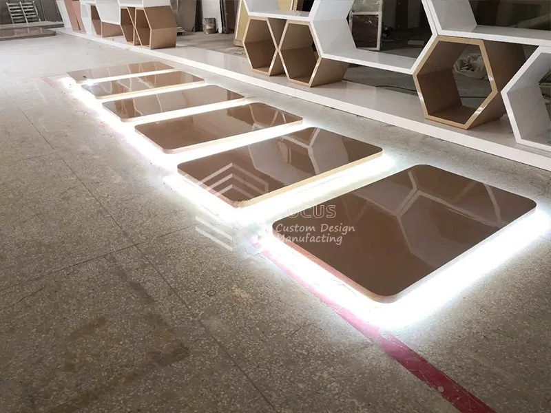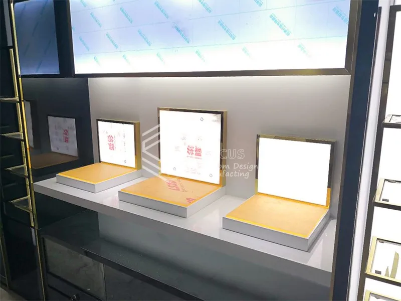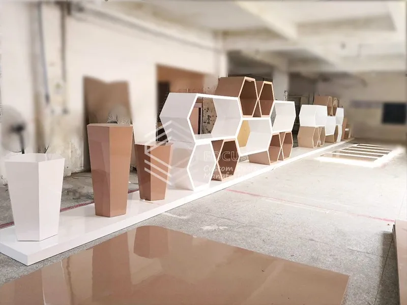 A: We are factory specialized in display furniture since 1999, covers area of 2000 sqms with Carpentry workshop, fully enclosed dust-free paint workshop, hardware workshop, glass workshop, assembly workshop.