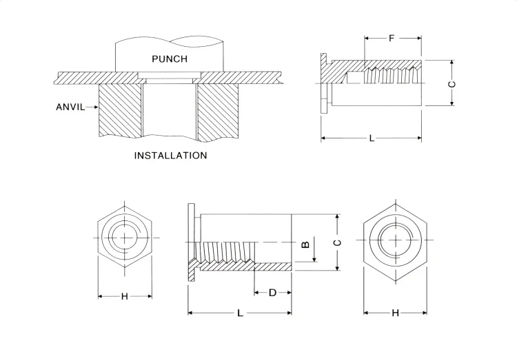 China manufacturers steel hex bso thread zinc self clinching standoff for automobile sheet metal