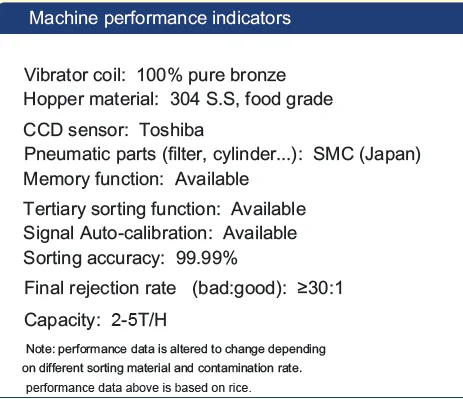 Sorting Materials | Polished round grain rice, Coarse rice, Thaliand rice. | ||||