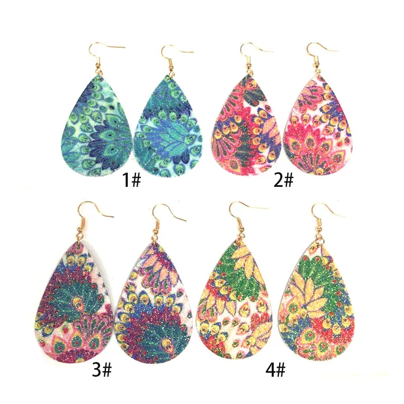 Low Price Boho Earrings Lightweight Glitters Dangle Teardrop Leather Peacock Earrings