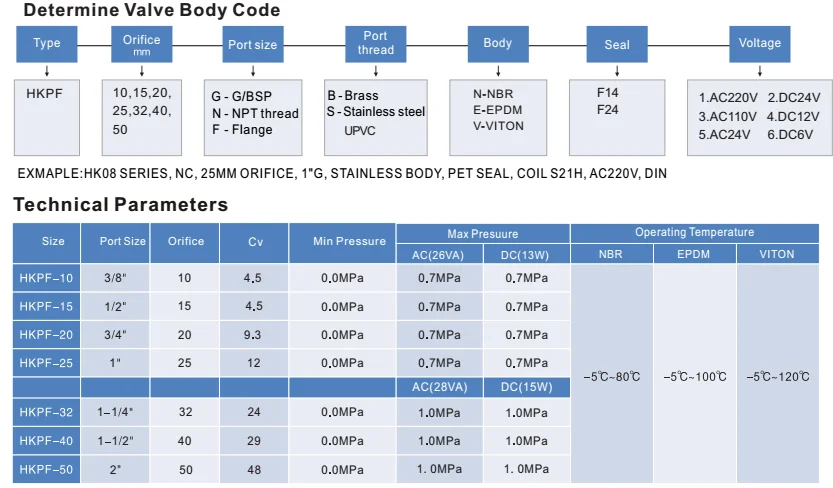 Valve Operation Type | Normally Closed (NC), Opens When Energized | ||||