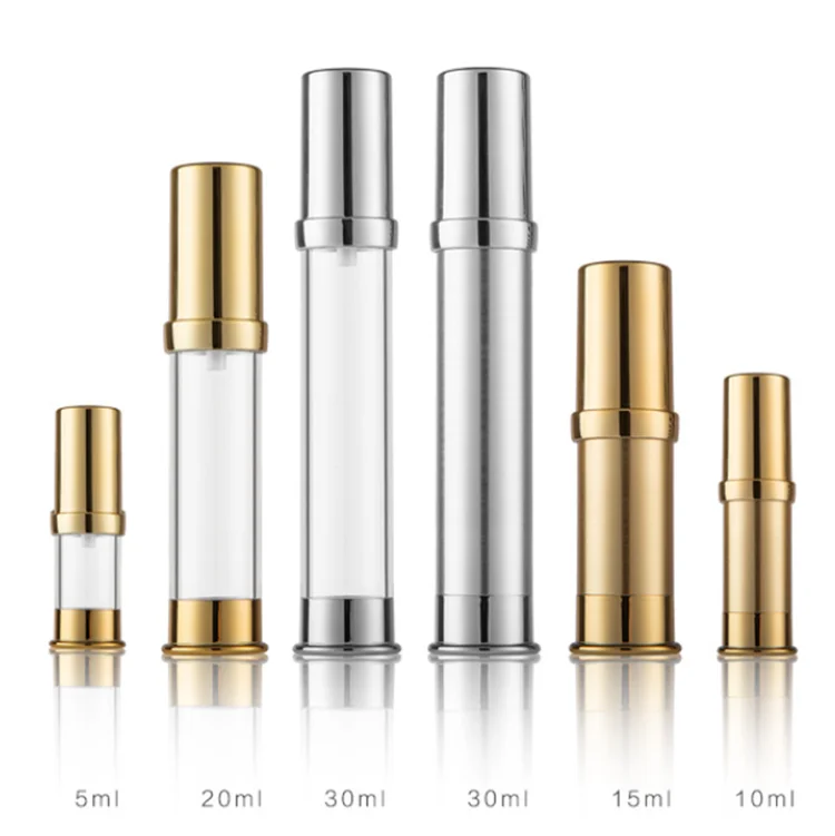 empty refill cosmetic package 15ml 30ml 50ml 100ml gold shine airless bottle with gold pump cap for lotion cream serum