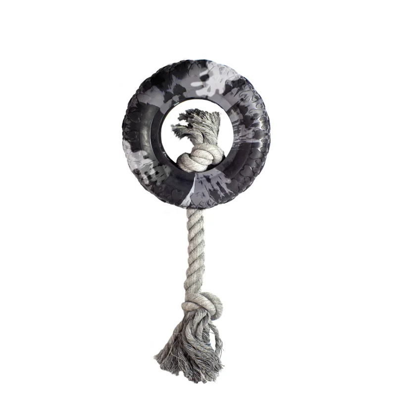 Popular Cool Camouflage Black Natural Rubber Solid Pulling Up Durable Dog Toy Tyre | ||||||