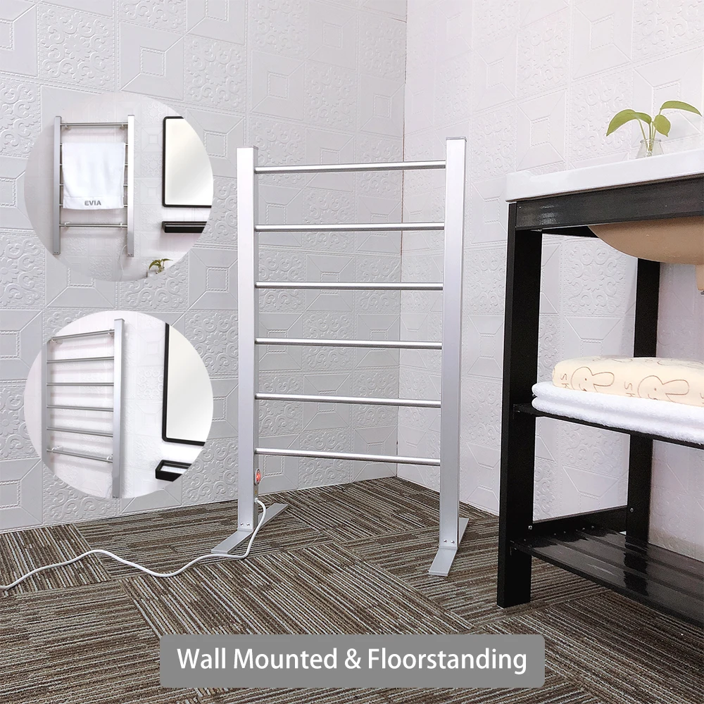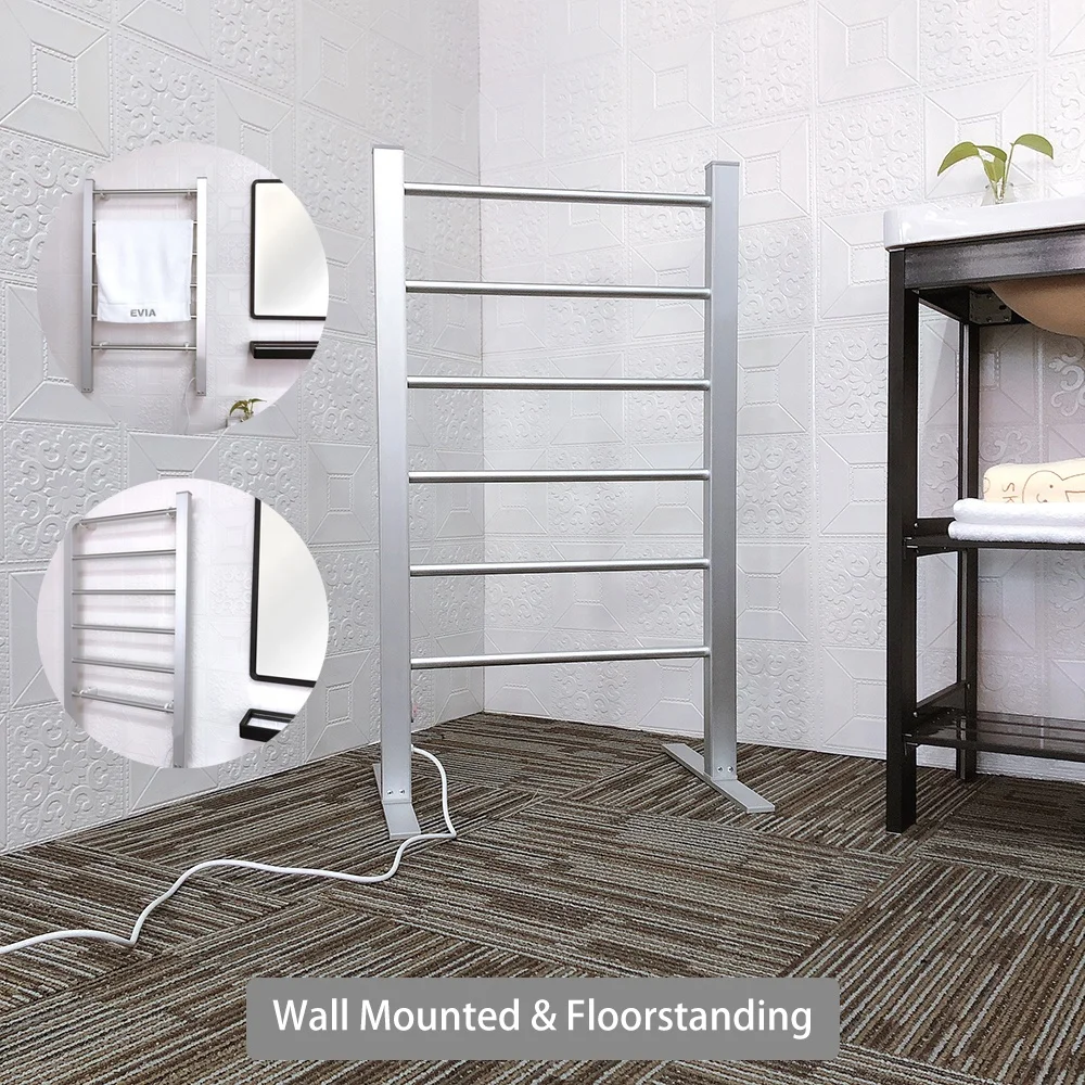 The EVIA electric towel racks adds class and elegance to the bathrooms in your home. It is made of high-quality aluminum and has enough room to hold plenty of towels or bathrobes. Each of the straight towel bars are designed to dry and warm large towels or bathrobes easily. Just imagine how wonderful it would be to have a warm towel after your shower or bath and being able to put on a warm bathrobe!