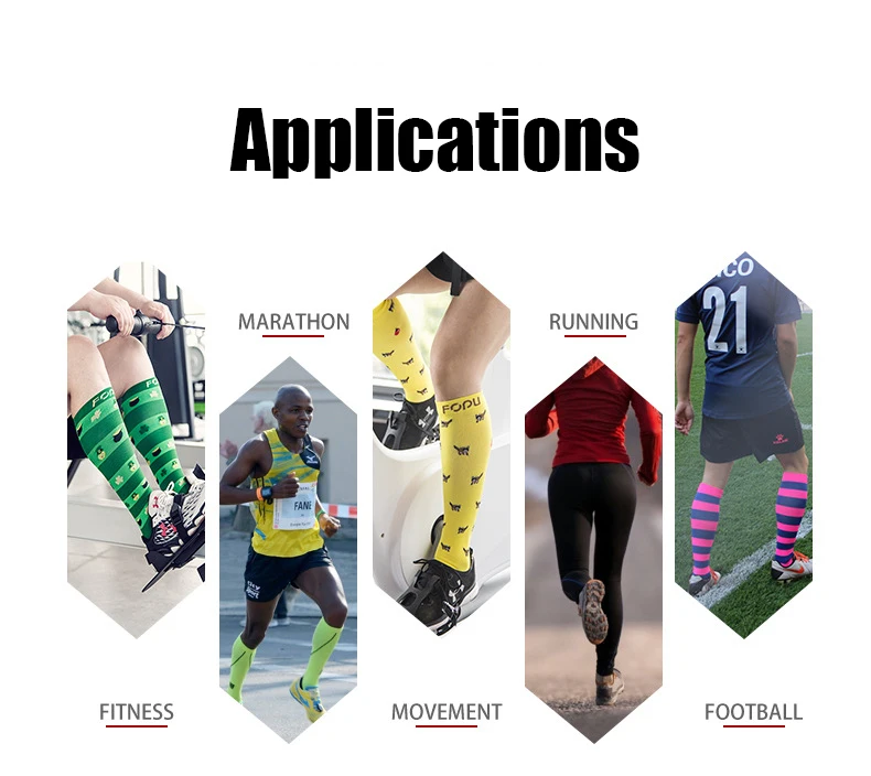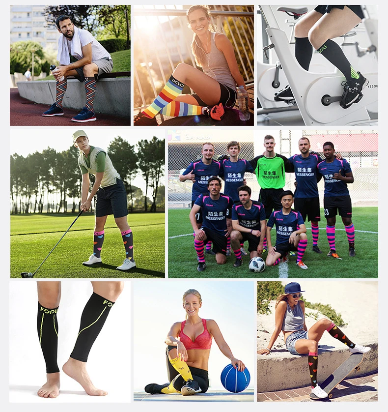 Feature | Graduated compression:Improved blood circulation. Reduce injuries: Better Blood Circulation as strongest compression happens at the ankle, and gradually decreases moving up the leg.Reduce swelling, cramping and stiffness in the foot, ankle and calf. Aids in the relief of varicose. |