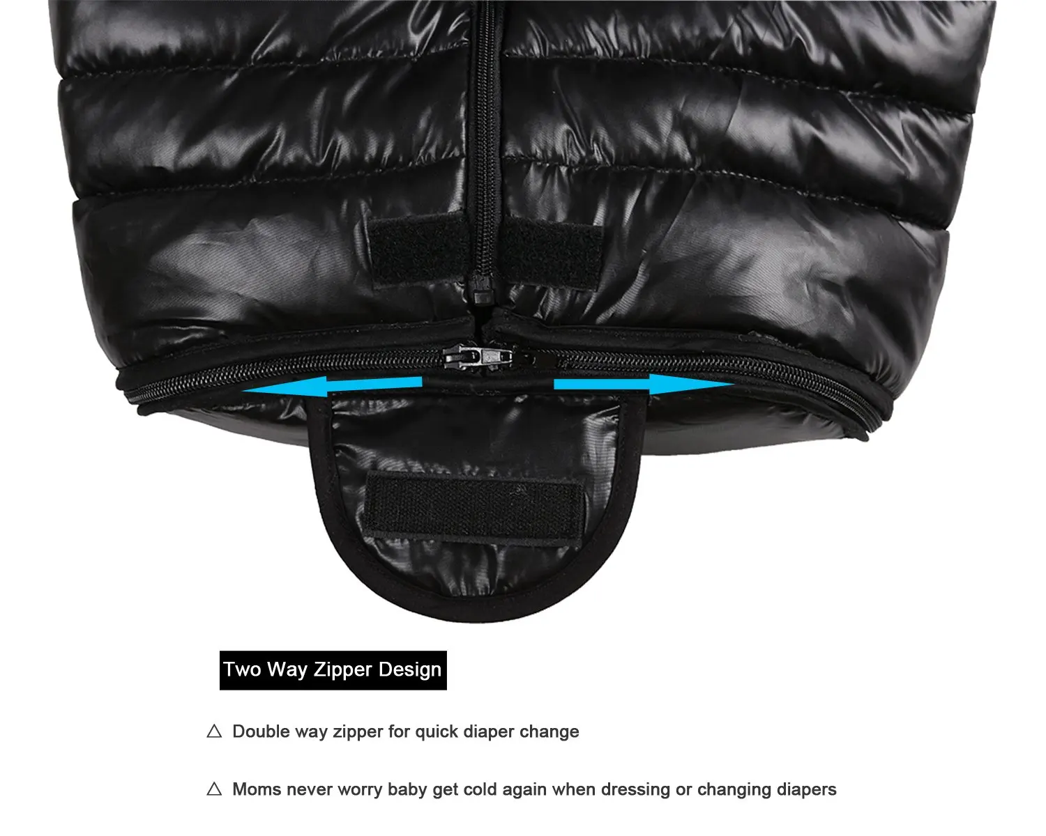 •Double zipper design: unzipped from top to bottom for quick diaper changing and easy donning