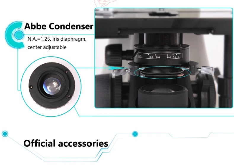 Condenser | Abbe condenser N.A.=1.25,with iris diaphragm,center adjustment,and height adjust knob. | √ | √ |