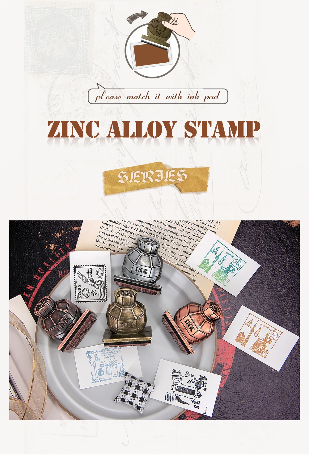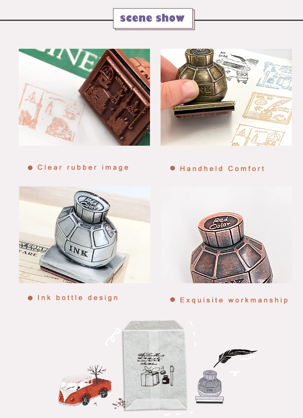 Fun&Joy Hot Funny Custom Ink Box Shape Kids Scrapbooking Inking Stamps for Children with Round Handle