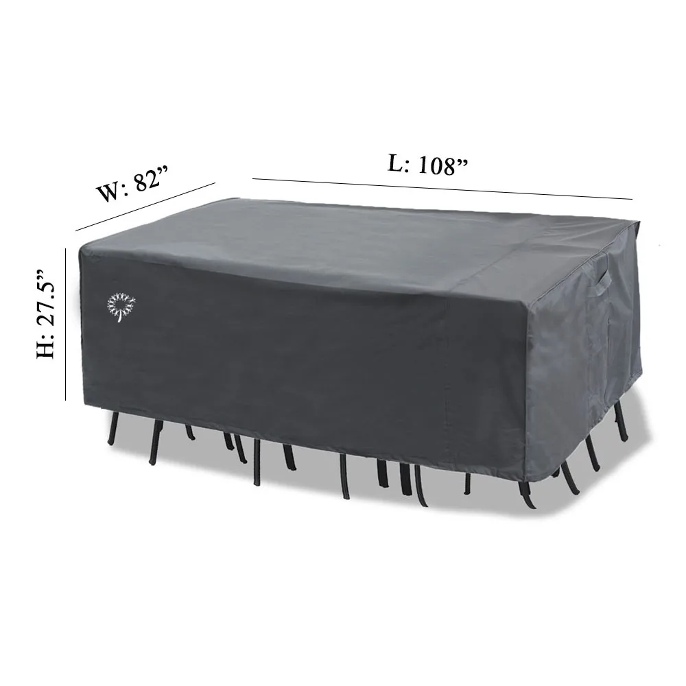 This cover is made with good strong 600D Oxford fabric material, inner coating and double stitched bound edges. It can be left outside all year round and provides full weather protection. The adjustable elastic drawstring fits tightly around the bottom of the table and allows custom fit. Four easy-to-use buckled straps can snap over legs to hold cover securely in place during windy days. In addition, the cover is equipped with two reinforced handles for easy installation and removal. What's more, the cover is easily folded for storage and won't take up a lot of room whilst not in use.