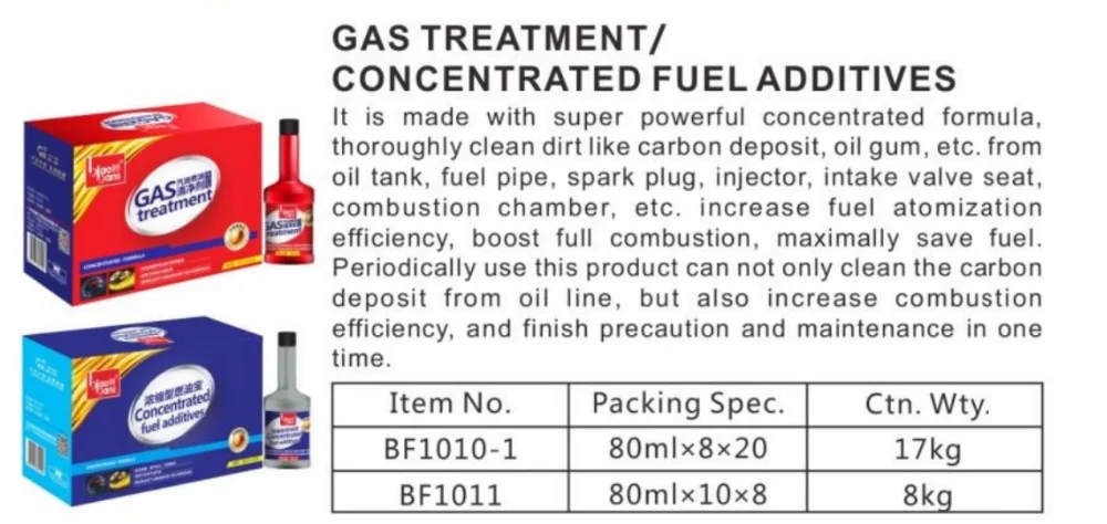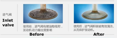 The product can effectively clean the gum and carbon deposit on the surface of throttle valve, pipes and the wall of the intake pipe, improve intake performance, return to normal air-fuel ratio, increase combustion efficiency, reduce fuel consumption and exhaust emission. It solves the engine out of shaking, unstable idle speed and acceleration problem. No harmful to oxygensensor.