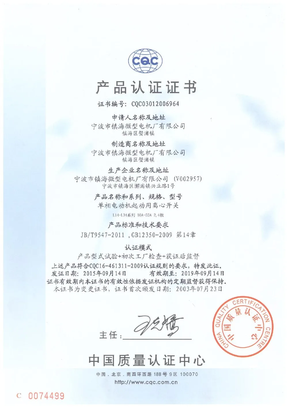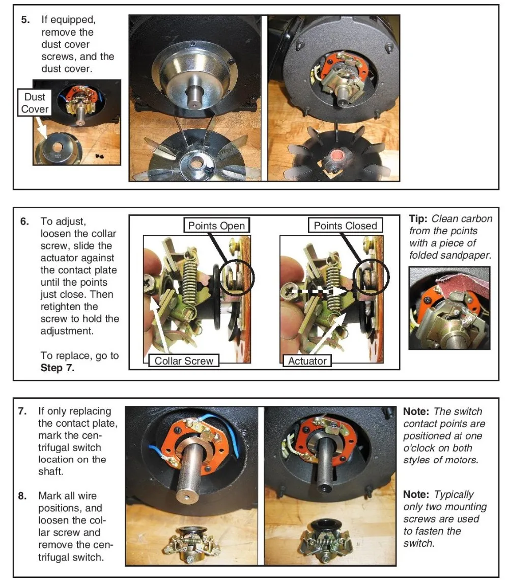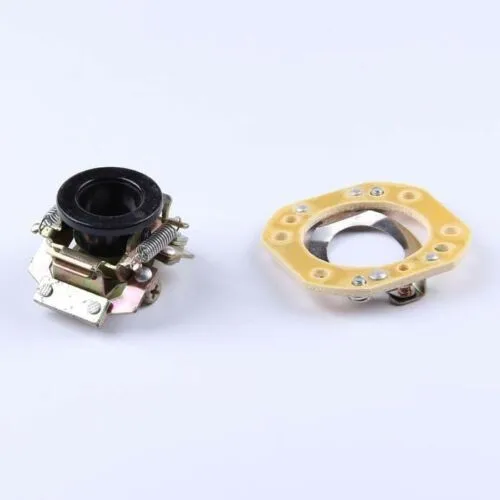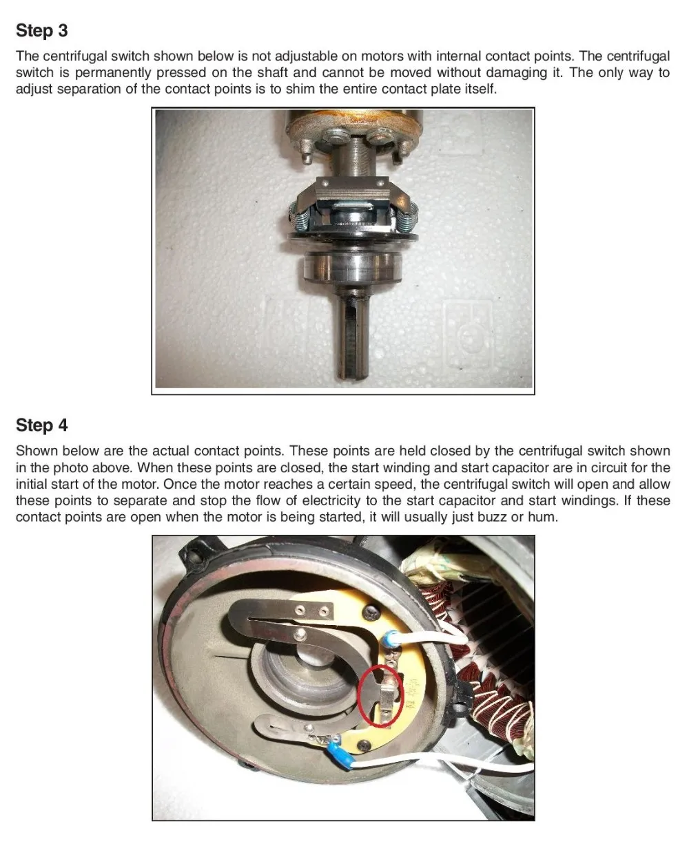 A centrifugal switch is a device designed to open or close a set of electrical contacts when the machine it is attached to reaches a pre-determined rotational speed. These devices make use of a phenomenon known as centrifugal force to achieve this switching action. The most common uses of centrifugal switches are starter cut-outs on gasoline engines and starting winding disconnectors in split phase electric motors. Centrifugal force is a product of rotational motion and requires one half of the centrifugal switch mechanism to rotate along with the crankshaft or rotor and the other to be static.