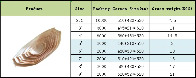 PRODUCT NAME | disposable pine wooden sushi boat | ||||