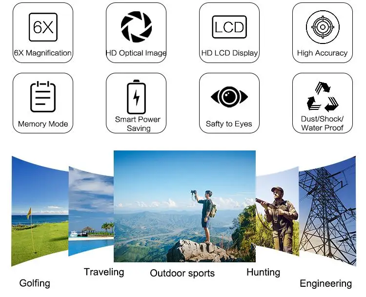 6X Magnification & HD Imaging Technologylaser rangefinder has 6x magnification, even objects far away can be seen clearly.