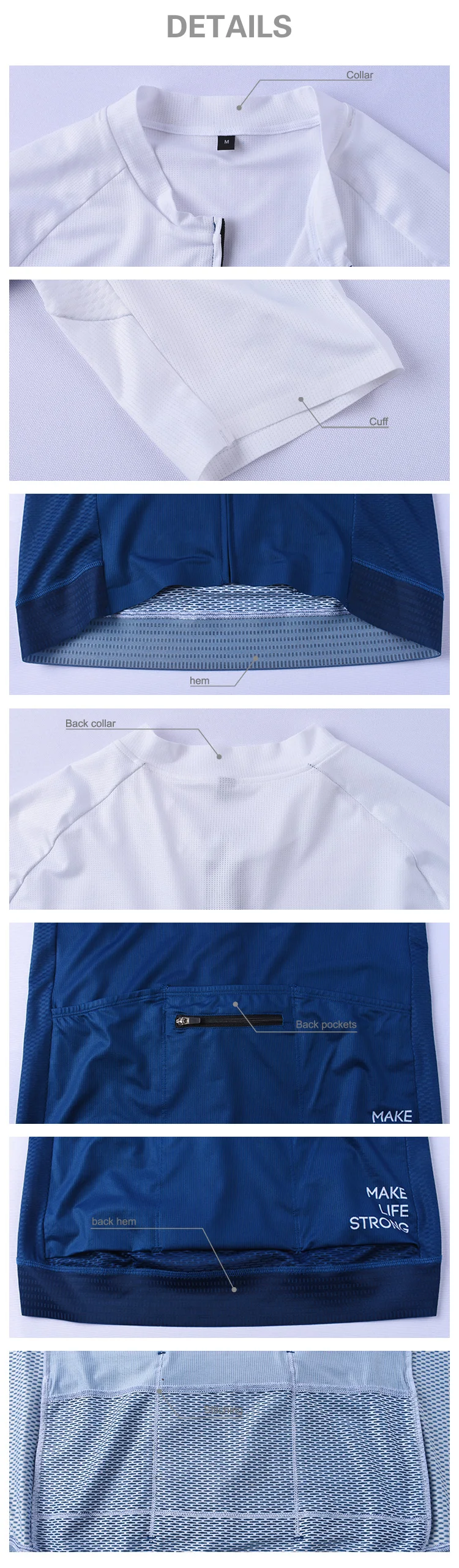 2.Bottom hem is equipped with elastic silicone tape to keep the jersey in place.
