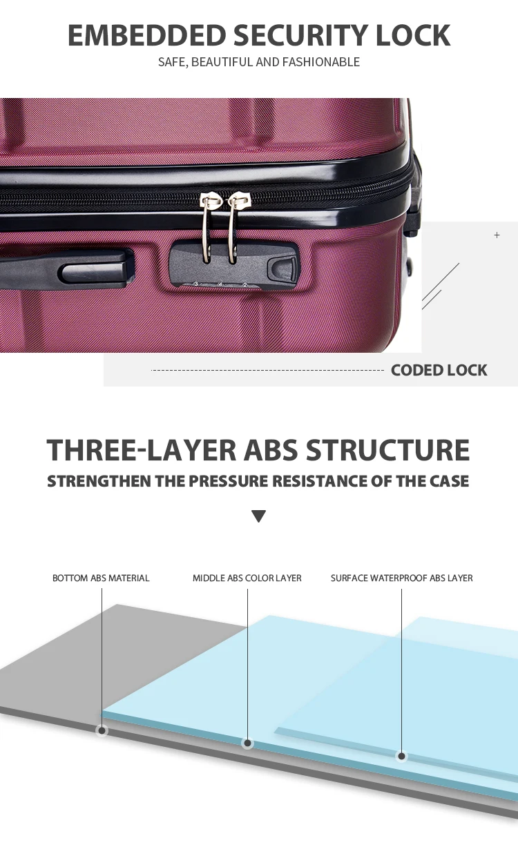 The double-tube retractable handle makes it easy to control the suitcase. The handle can be retracted when not in use using the handy push-button release mechanism. The smooth, chunky zippers make it easy to open and close the suitcase, and can be secured together using the 3-digit combination lock supplied with the suitcase. Top and side grip handles make it easy to load and unload.