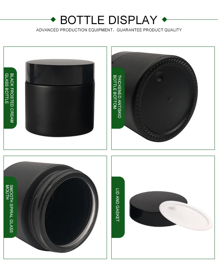 Product name | Cosmetic packaging 15g 30g 50g 60g 100g frosted matte black glass cream cosmetic jar with black lid |