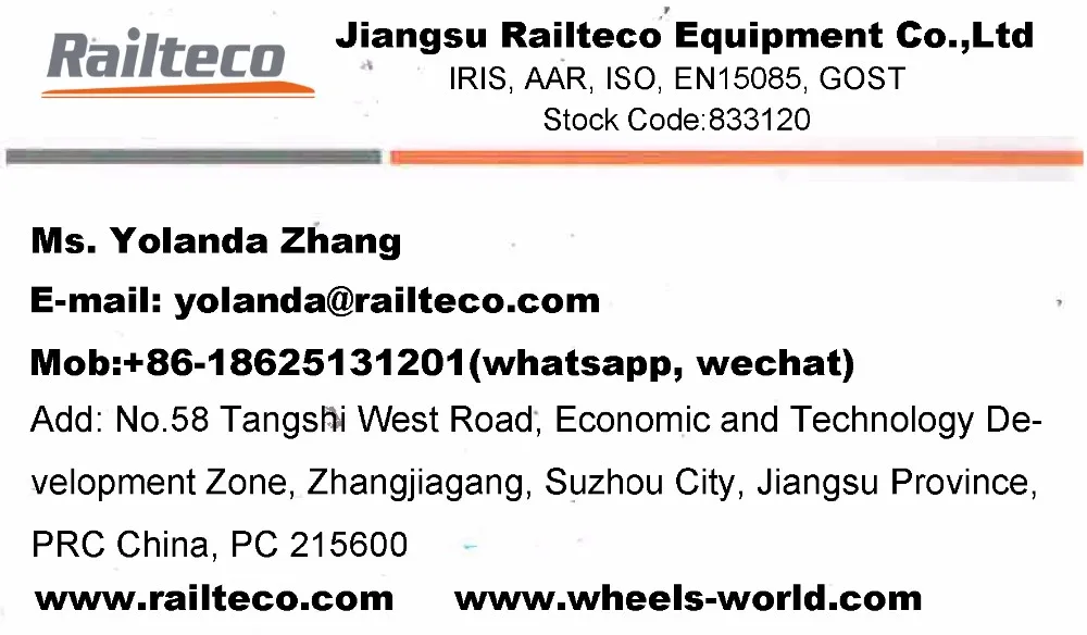 Railteco has been approved as a high-tech enterprise in 2015, and also got IRIS (international railway industry standard) quality management system certification, the scope of certification is axle and wheel sets production for the rail transit; Railteco has got AAR M-1003 certification in the scope of A15 axles manufacturing, B33-1 wheels press-fit workshop - freight vehicles and B33-5 wheels and axles processing - freight vehicles; Railteco has obtained TSI certification in the scope of BA002 axles, BA004 wheel sets, Y25 Lsd1-K bogie and Y25 Ls1-K bogie; Railteco has obtained EN15085 certificate in the scope of bogies, underframes, wagon body and brake equipment; Railteco has awarded ISO 9001: 2008, ISO 14001: 2004, OHSAS18001: 2007 certifications, etc. Railteco also passed the supplier qualification from German DB customer and Alstom France. During business operation process, Railteco always adhere to the implementation of the industry's highest management standards, continuous improvement of the work, continuous improvement of products and service, to reach the maximum pursuit of customer satisfaction.