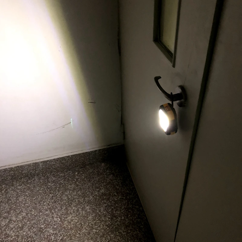 3 Watt COB frontal for wide area lighting and 3 LED upper as a flashlight,with hidden stand and hook for standing or hanging,different lighting angle.