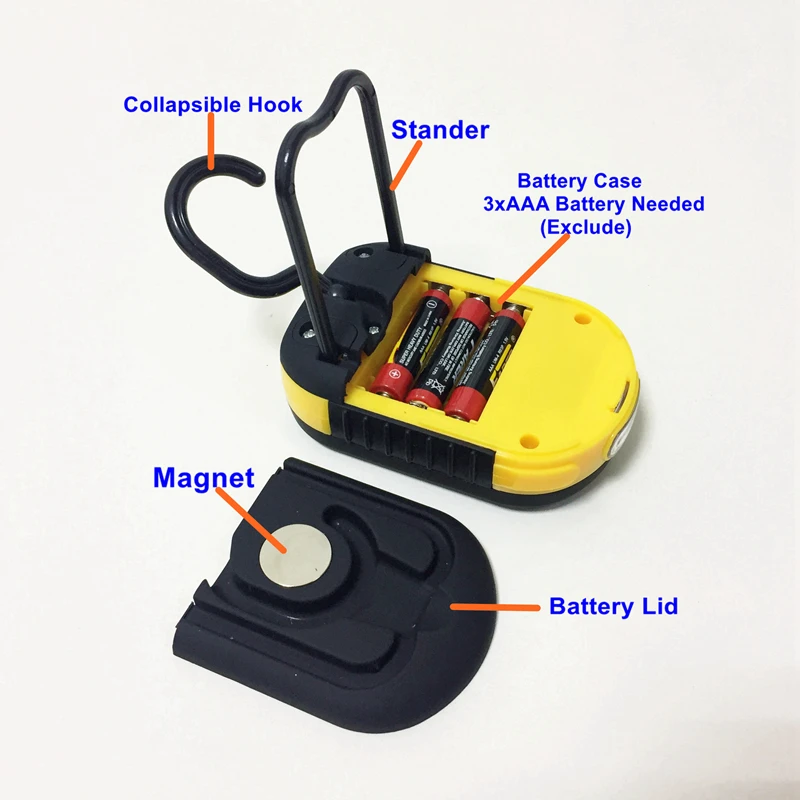 Dual Beam, Battery Power LED Work Light | 3xAAA# Battery, Not Included | 3 LED + advanced 3 Watt COB LED | Dual Beams, Magnet+Hidden Stand, Good Price | Battery is Exchangeable | ||||