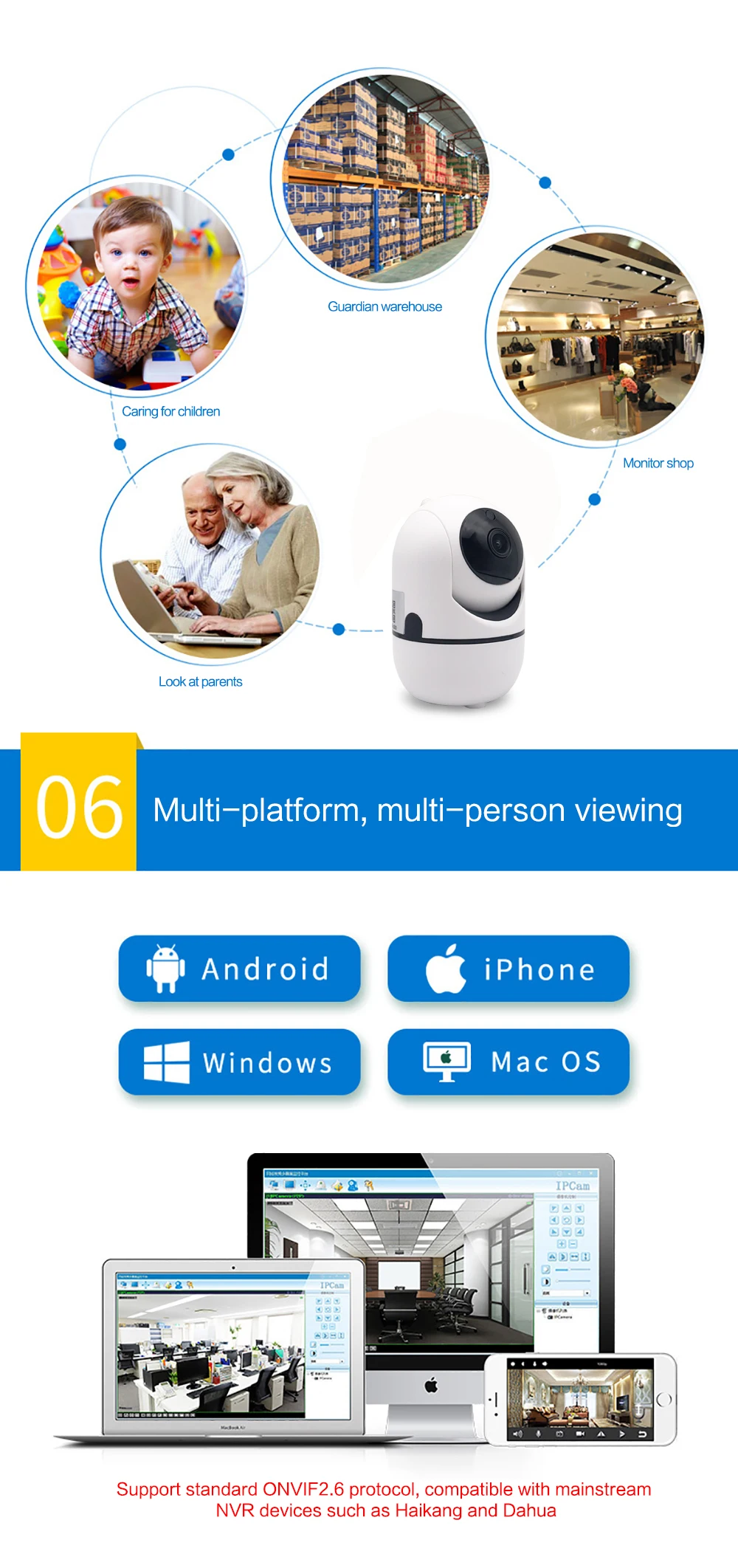 Alarm trigger | Video Push、Alarm recording、screen shot capture ,sending Email | ||||||