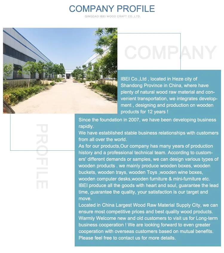 IBEI Co.,Ltd , located in Heze city of Shandong Province in China, where have plenty of natural wood raw material and convenient transportation, we integrates development , designing and production on wooden products for 12 years !
