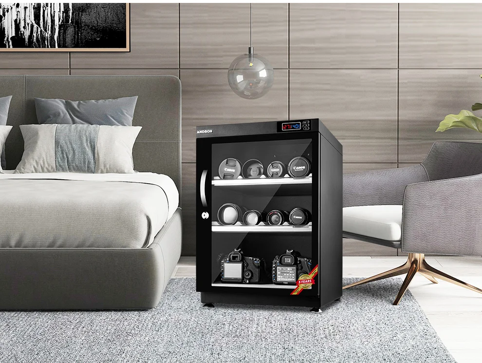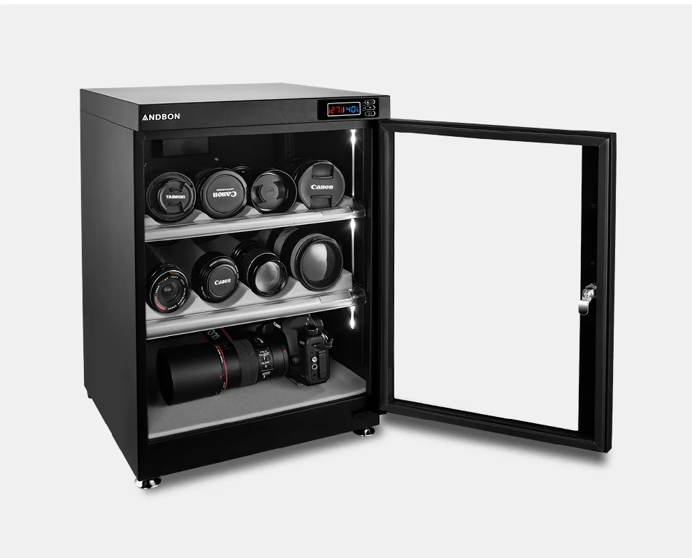Protect your lenses, photographic and optical equipment, mobile electronics, and other valuable accessories from excessive moisture, dirt, and dust with ANDBON Drying cabinet dry+cabinet/ dehumidifier.