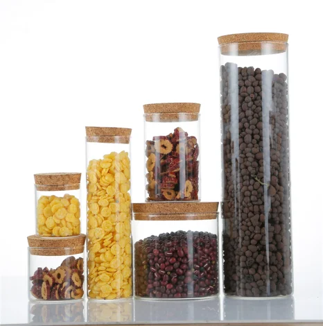 | 1. Borosilicate glass material. 2. Food grade: nuts needles, honey and dried food. It has good airtightness. 3. Different sizes for you to choose. You can also customize 4. Seal with cork 5. Printable identification. |