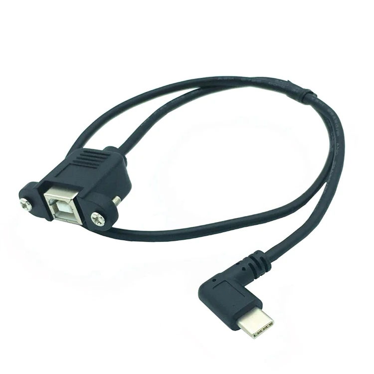 Custom Made USB 2.0 B Screws Panel Mount Female Socket to Right Angle Type-c Male Extension Printer Panel Mount Cable