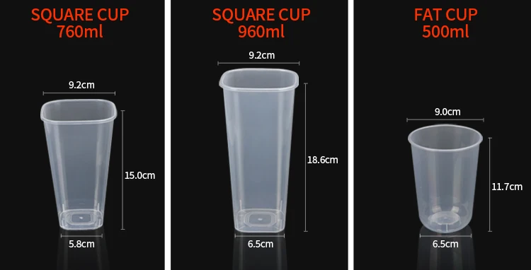 These Four different styles plastic cups you can choose: U-shaped cup, Square cup, Frosted cup and Transparent cup. This reusable plastic drinking cup with lid and colorful fork is the perfect for any beverage menu at milk tea house, coffee shop and dessert house and restaurant! Also welcome to customize logo in these cup to upgrade brand image and demonstrate coporate culture. Your customers will love that they can take this beverage home with them once they leave your restaurant to use again and again! More important it holds multi-capacity oz. of milk tea, fruit tea, juice, or other cold and hot drinks.