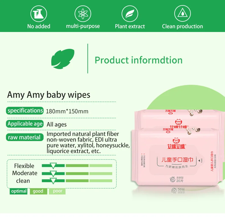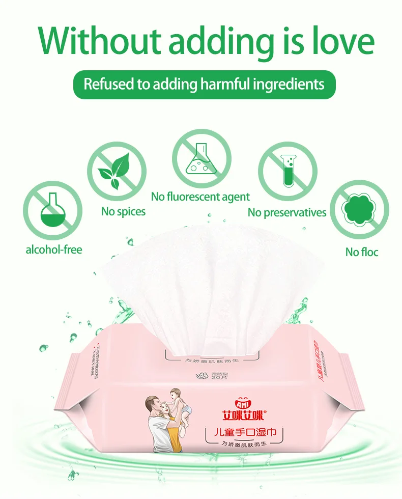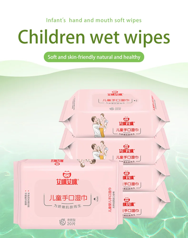 Amiami Portable wet wipes Add honeysuckle and licorice extract essence,Natural non-woven fabric,RO pure water,Fragrance-free, alcohol-free, non-fluorescent.Very soft and tough, not easy to break, no irritation, no allergies, no alcohol, suitable for children and adults to clean the skin.